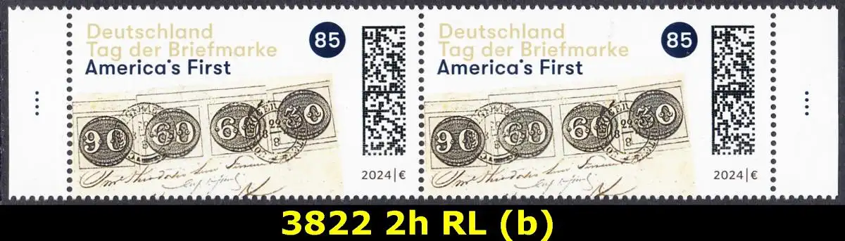 BUND 2024 Michel-# 3822 postfrisch horiz.PAAR RÄNDER rechts/links (b)