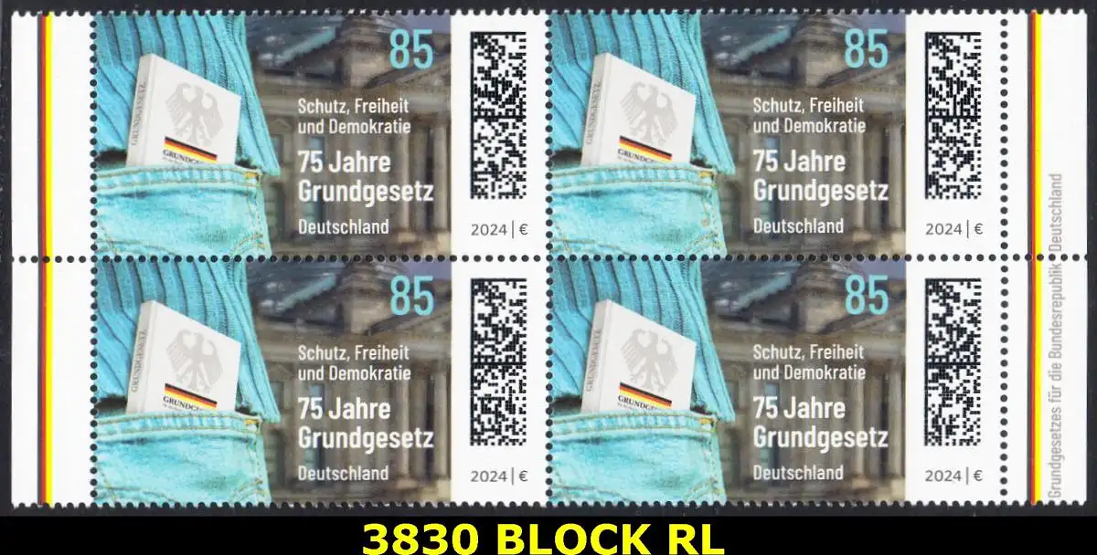 BUND 2024 Michel-# 3830 postfrisch BLOCK RÄNDER rechts/links
