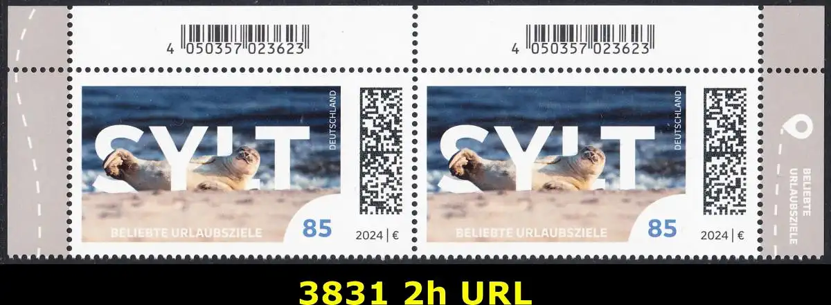 BUND 2024 Michel-# 3831 postfrisch horiz.PAAR ECKRÄNDER oben rechts/links