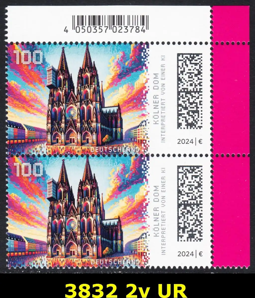 BUND 2024 Michel-# 3832 postfrisch vert.PAAR ECKRAND oben rechts