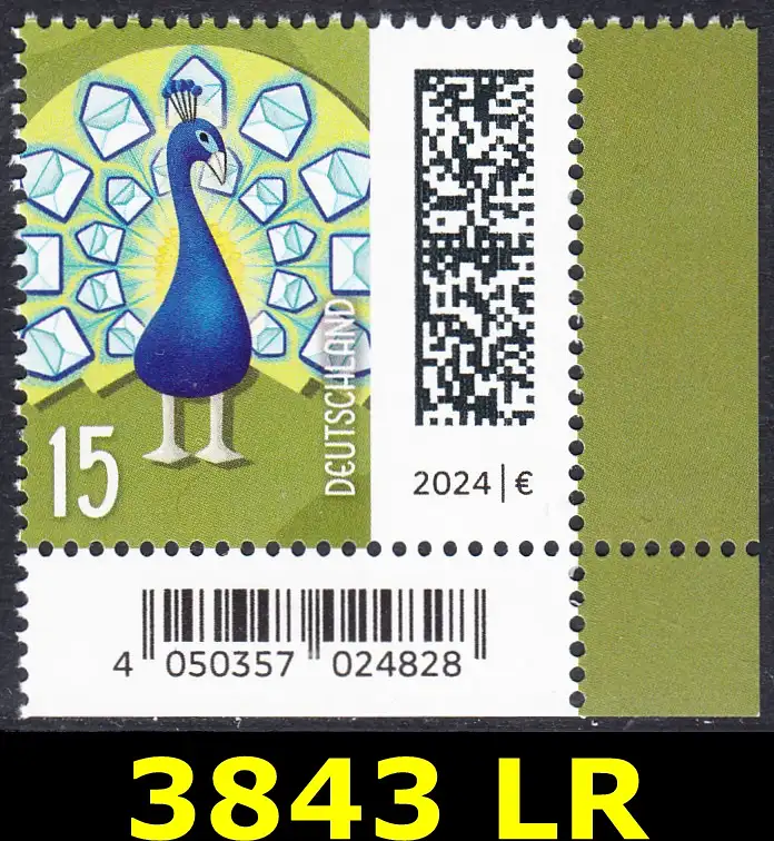 BUND 2024 Michel-# 3843 postfrisch EINZELMARKE ECKRAND unten rechts