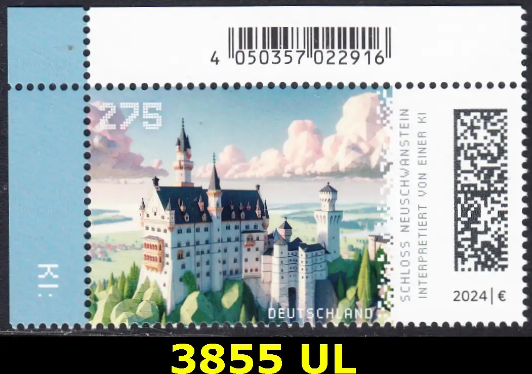 BUND 2024 Michel-# 3855 postfrisch EINZELMARKE ECKRAND oben links