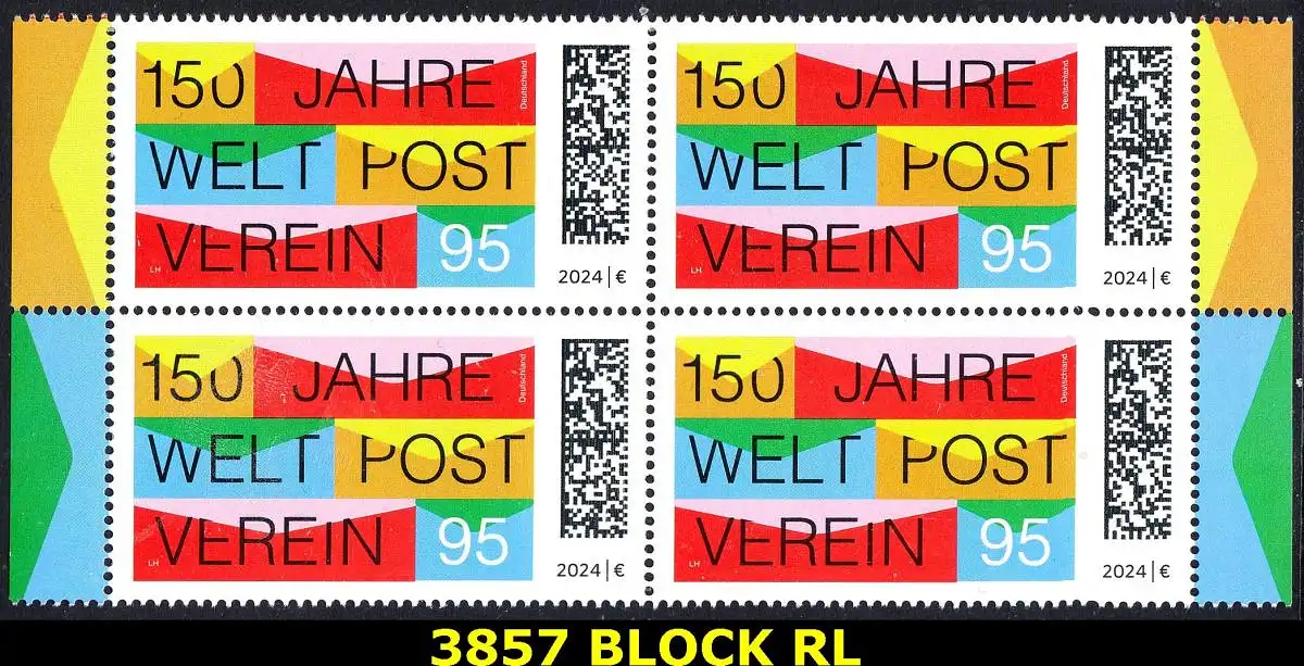 BUND 2024 Michel-# 3857 postfrisch BLOCK RÄNDER rechts & links