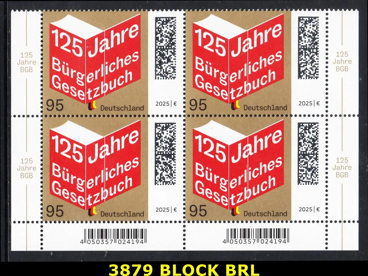 BUND 2025 Michel-# 3879 postfrisch BLOCK ECKRÄNDER unten rechts/links