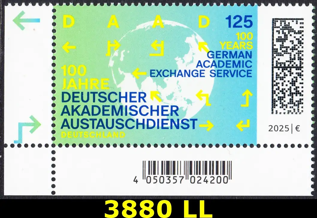 BUND 2025 Michel-# 3880 postfrisch EINZELMARKE ECKRAND unten links
