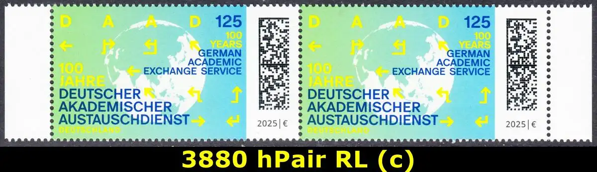 BUND 2025 Michel-# 3880 postfrisch horiz.PAAR RÄNDER rechts/links (c)