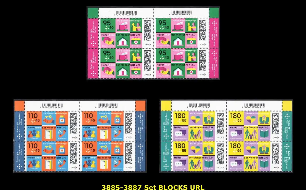 BUND 2025 Michel-# 3885-3887 postfrisch SATZ(3) BLOCKS ECKRÄNDER oben rechts/links