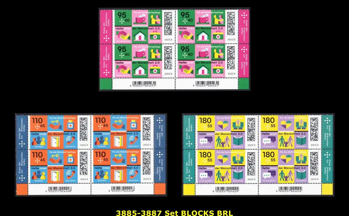 BUND 2025 Michel-# 3885-3887 postfrisch SATZ(3) BLOCKS ECKRÄNDER unten rechts/links