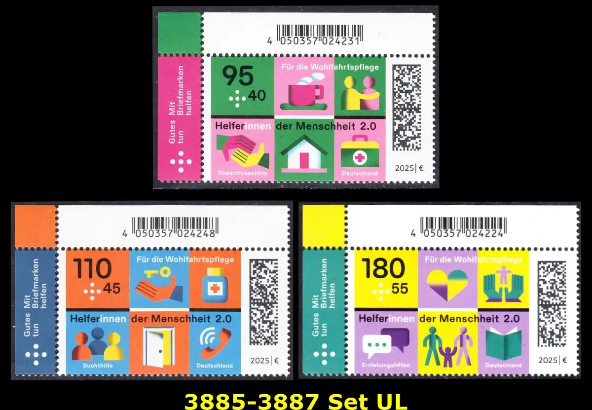 BUND 2025 Michel-# 3885-3887 postfrisch SATZ(3) EINZELMARKEN ECKRÄNDER oben links