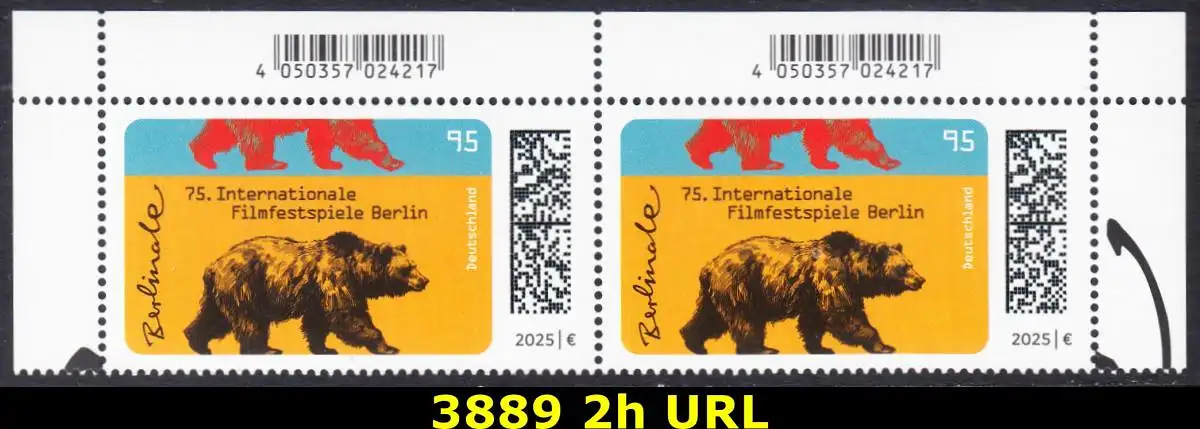 BUND 2025 Michel-# 3889 postfrisch horiz.PAAR ECKRÄNDER oben rechts/links