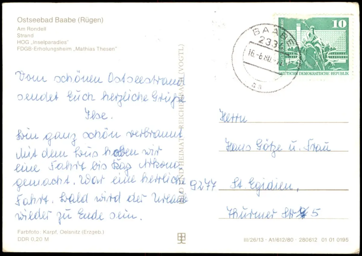 Baabe Am Rondell, HOG Inselparadies, FDGB-Erholungsheim Mathias Thesen 1980