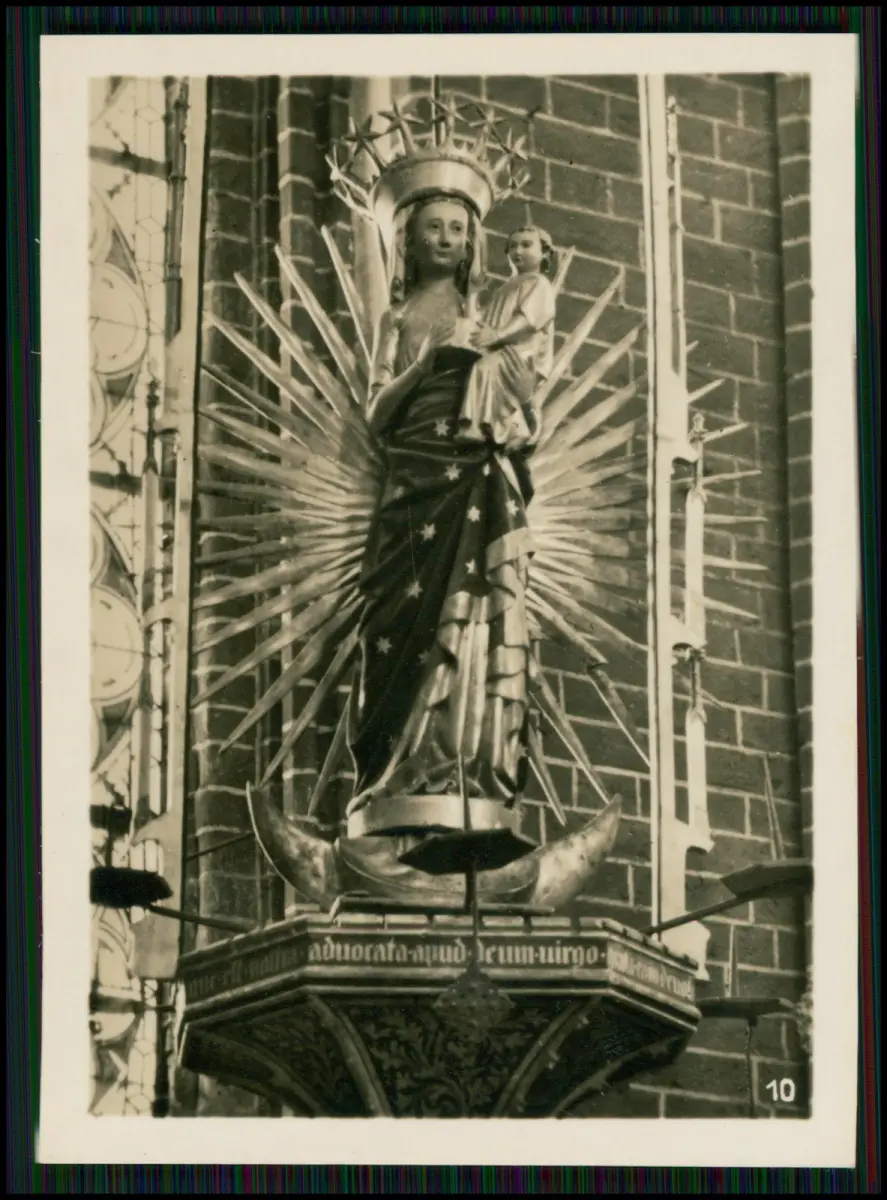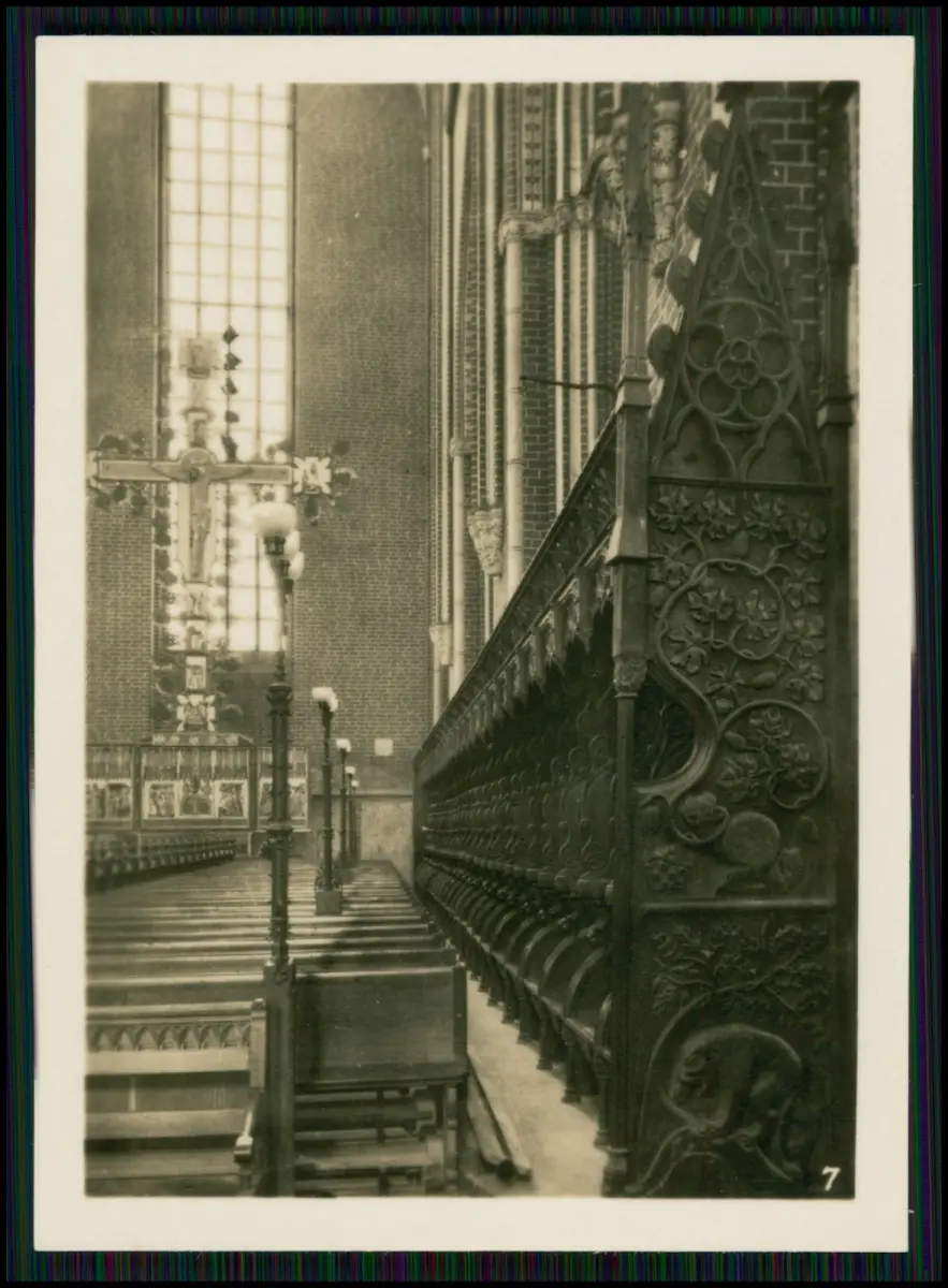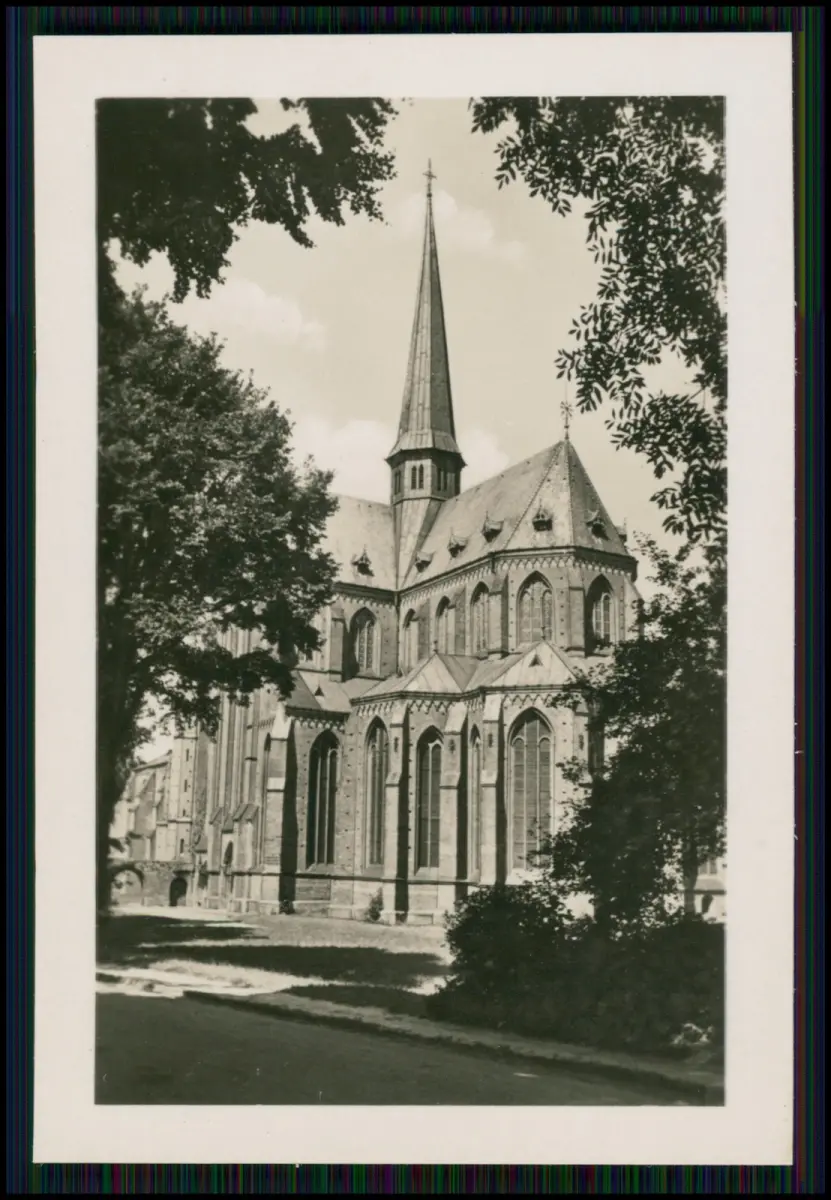 Motivübersicht: Klosterkirche Bad Doberan Gebäudefront und Kirchenschiff Triumphkreuz, Kanzel, Mittelschiff Säule des Triumphkreuzes (Marienseite) Seitenaltar und Mittelschiff Mittelschiff mit Altarraum Das Doberaner Münster, auch Klosterkirche Bad Doberan genannt, ist ein Hauptwerk der norddeutschen Backsteingotik und war einst die Grablege der mecklenburgischen Herzöge. Das Bauwerk gehört zu den bedeutendsten mittelalterlichen Kirchen Norddeutschlands Rückseite: Originaldruck mit Verlagsangabe, Seriennummer und Herstellungskennzeichnung. Zustand: gut erhaltene Mappe, komplett mit allen sechs Aufnahmen, minimale altersbedingte Spuren.