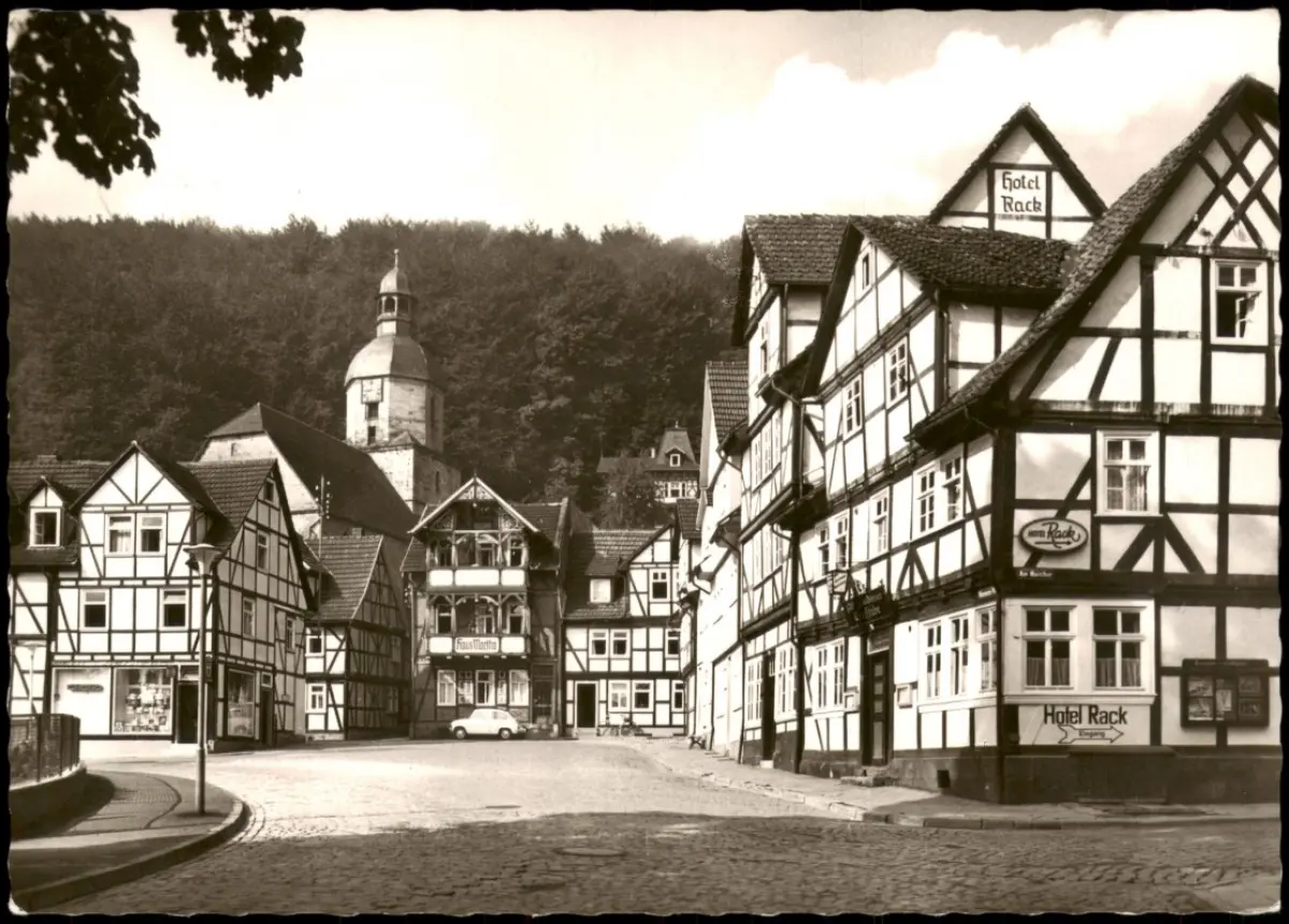 Bad Sooden-Allendorf Partie am Rhenanusplatz mit Hotel Gasthaus Rack 1963