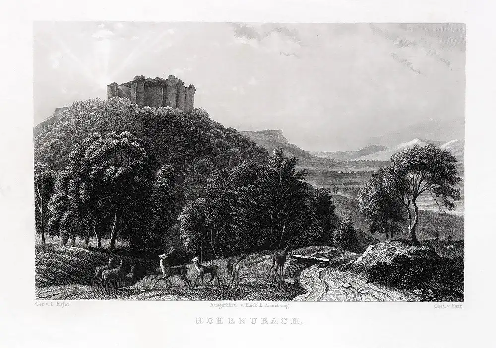 Bad Urach Hohenurach. Originaler Stahlstich, Parr um 1850