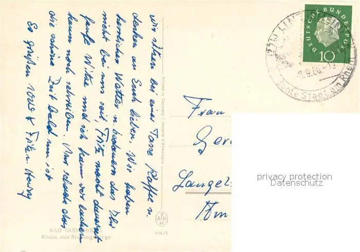 Bad_Godesberg Rheinpartie Dampfer mit Siebengebirge Bad_Godesberg postalisch gelaufen 1960 Erhaltung siehe scans [WerneD78] WernPID7