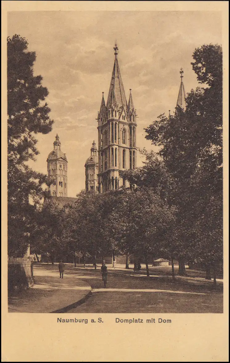 Bahnpost BERLIN-WÜRZBURG ZUG 38 - 9.2.1928, AK Naumburg/Saale Domplatz mit Dom