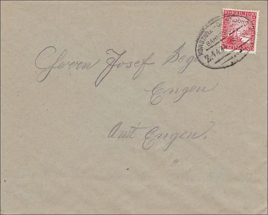 Bahnpost: Brief mit Zugstempel Konstanz-Offenburg 1928