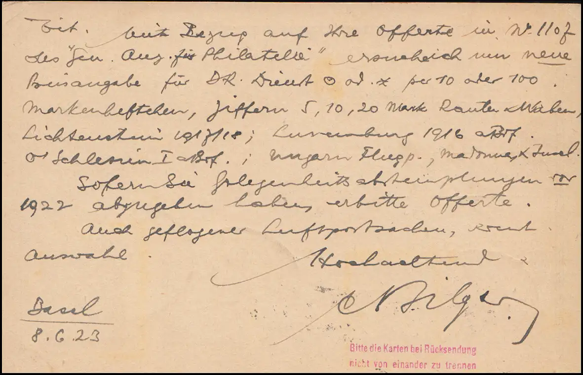 Bahnpost FREIBURG (BREISGAU) - DONAUESCHINGEN ZUG 1543 - 12.5.1923 auf P 147F+ZF
