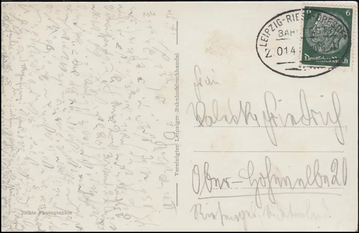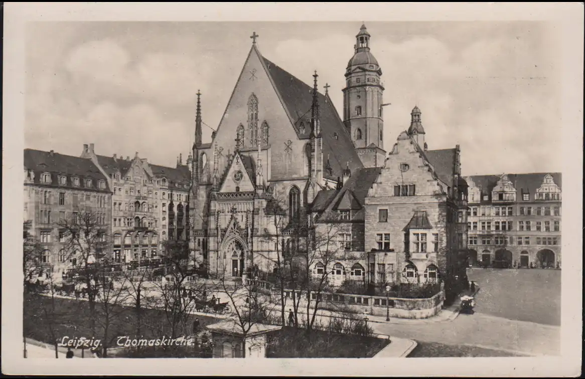 Bahnpost LEIPZIG-RIESA-DRESDEN 10.6.1941 auf AK Leipzig Thomaskirche