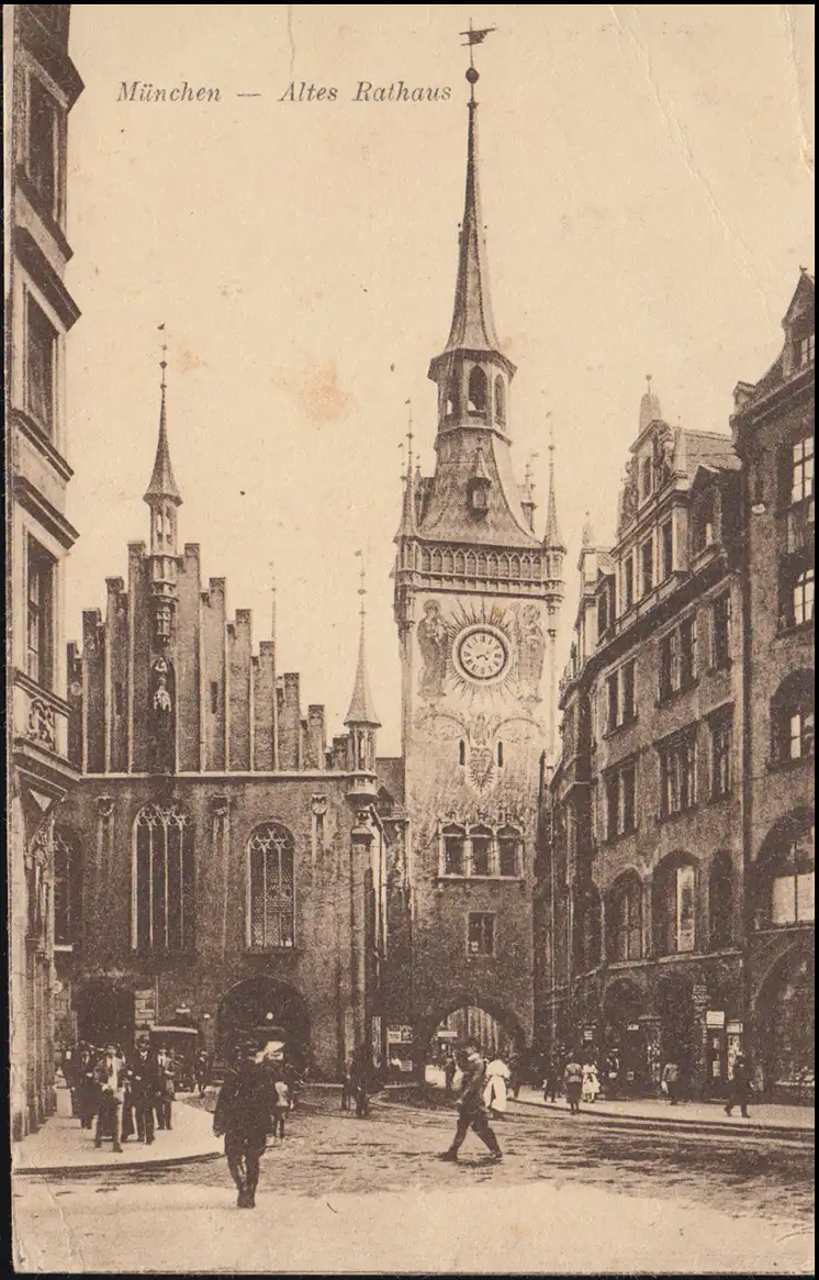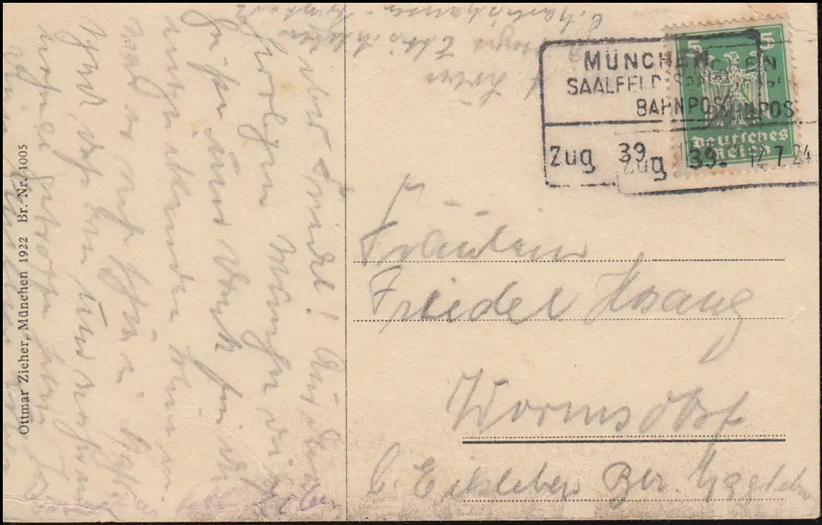 Bahnpost MÜNCHEN-SAALFELD (SAALE) ZUG 39 - 12.7.24 auf AK München Altes Rathaus