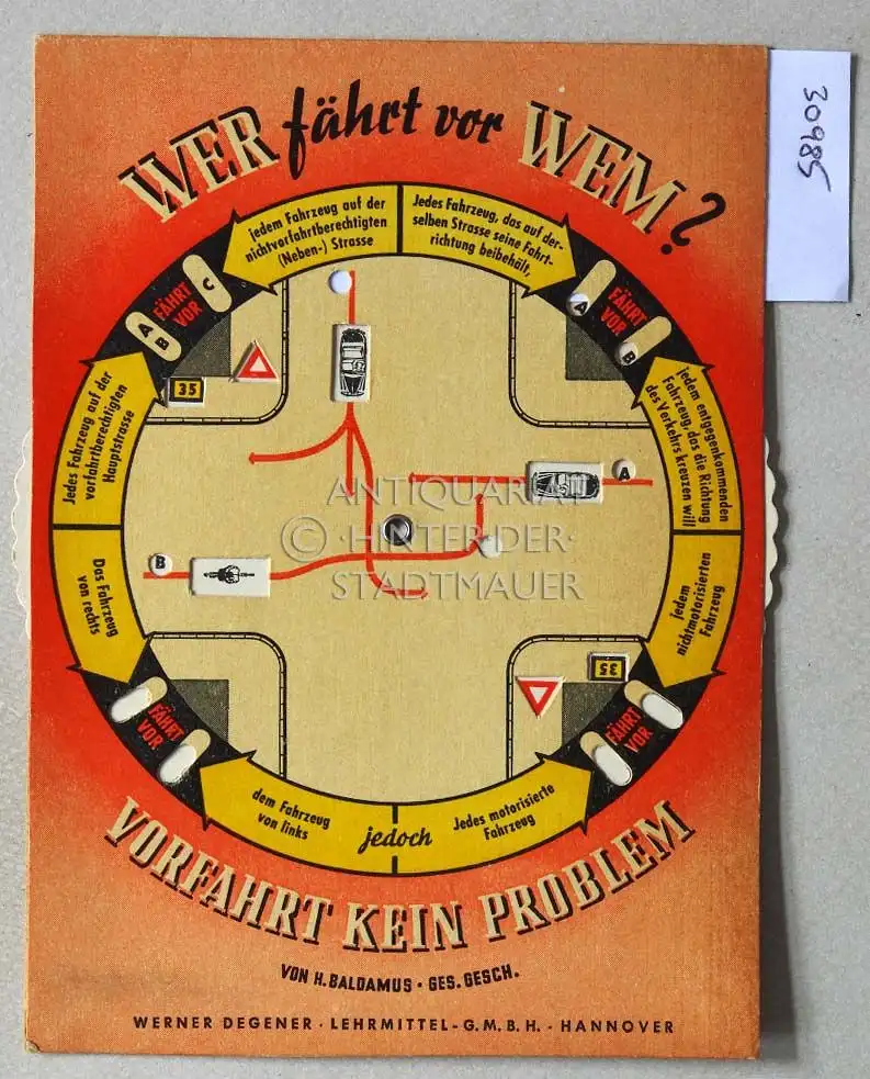 Karton-Drehscheibe mit Ausschnitten, in denen Fahrzeuge/Verkehrsschilder angezeigt werden. Kanten leicht berieben, Papier leicht gebräunt; gutes Exemplar