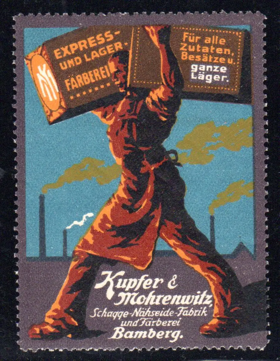 Bamberg, Nähseide-Fabrik u. Färberei Kupfer & Mohrenwitz, schöne alte Vignette.
