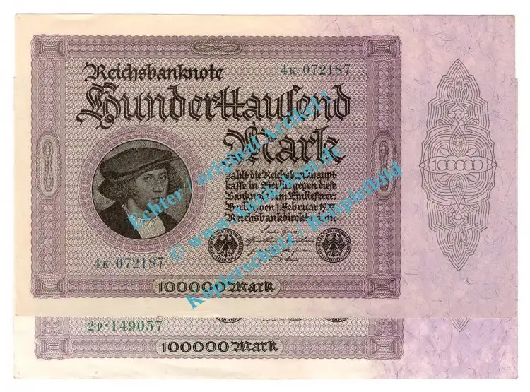 Gutschein / Banknote über Einhunderttausend Reichsmark von 1923 , Weimarer Republik - InflationGrabowski / Rosenberg / Pick : DEU-93.e / 82 / P.83