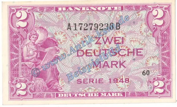 Banknote über Zwei Mark von 1948 , Bank deutscher Länder / KopfgeldGrabowski / Rosenberg / Pick : WBZ-3 / 234 / 3a