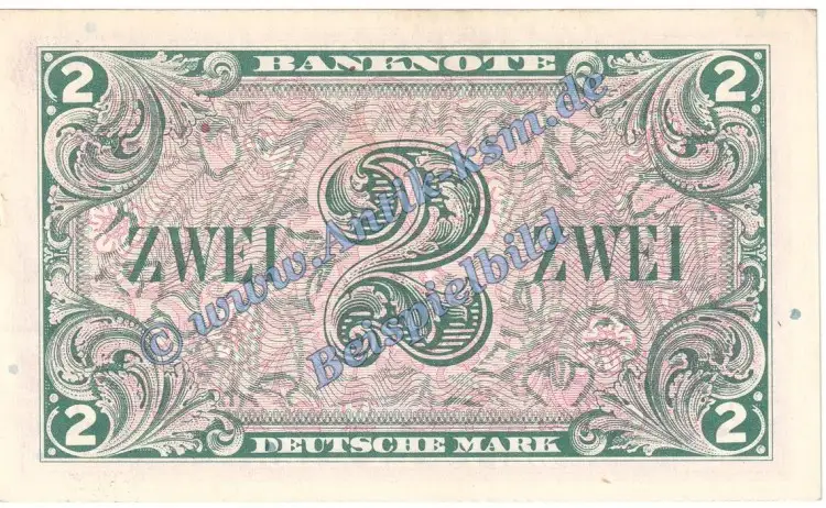 Banknote , 2 Mark Schein in kfr. WBZ-3, Ros.234, P.3a von 1948 , Bank deutscher Länder , Kopfgeld