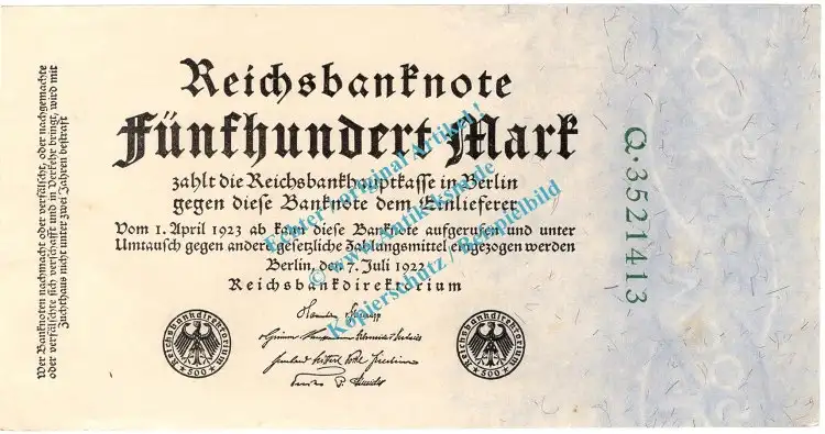 Datum : 07.07.1922  ,  Wasserzeichen : 500 M im Spiralband