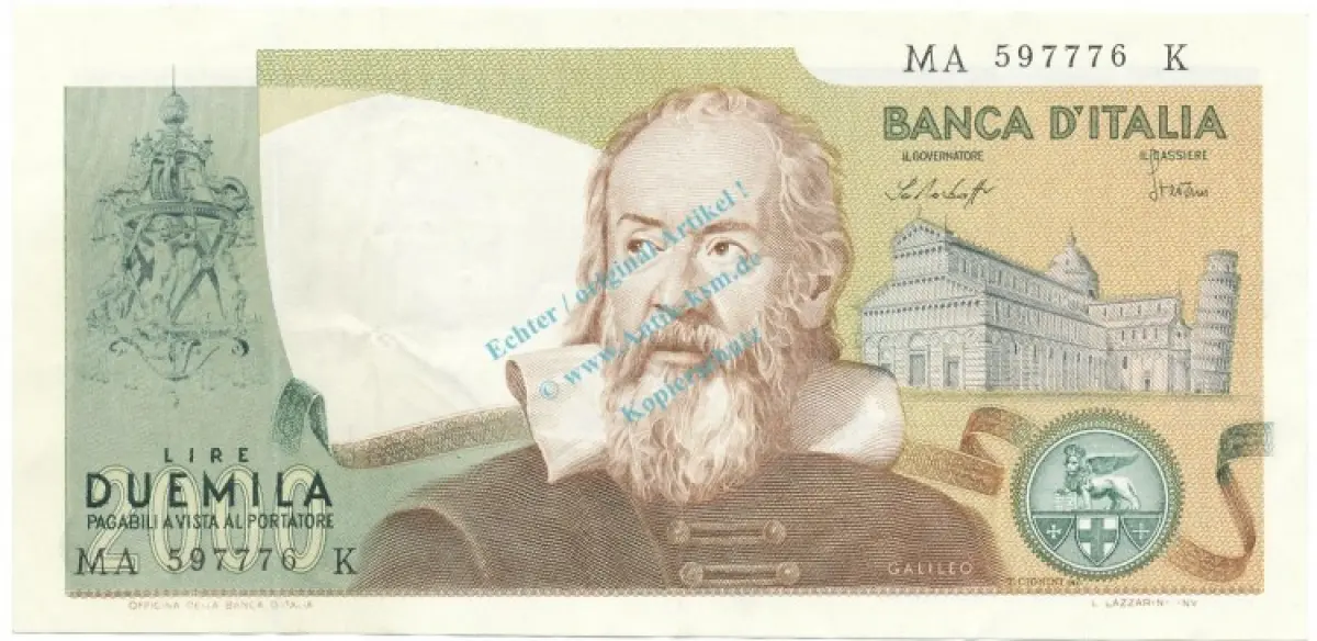 Banknote Italien , 2.000 Lire Schein L-gbr. 1973-76, WPM.103 -Galileo- 0337