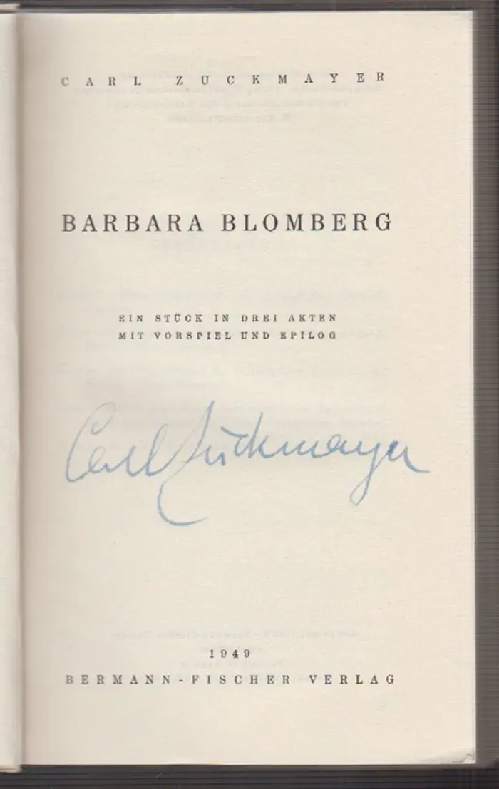 Bemerkungen: Mit eigenhänd. Signatur Zuckmayrs a. d. Titelblatt.