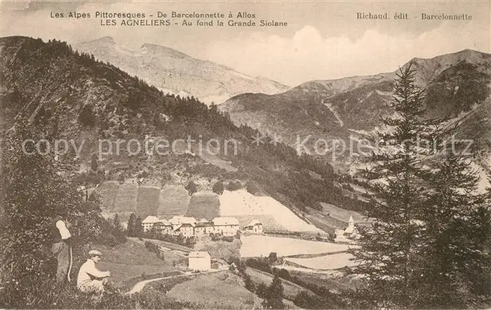 Barcelonnette Panorama des Agneliers au fond la Grande Séolane Alpes Barcelonnette postalisch nicht gelaufen 1921-1965 Erhaltung siehe scans [FriedD77] Frierer