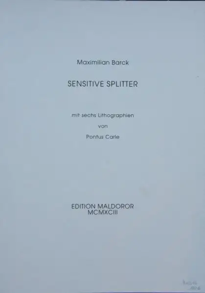 7 Bl. und 6 signierte Lithographien in Original Leinenkassette. Kassette: 44 x 31 cm. Nummeriertes und Pontus Carle und Maximilian Barck signiertes Exemlar. Kassette minimal berieben und angestaubt, insgesamt schönes Exemlar.