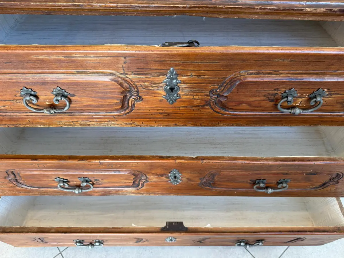 Zwei Laden verfügen über originale Barockschlösser mit passenden Schlüsseln,