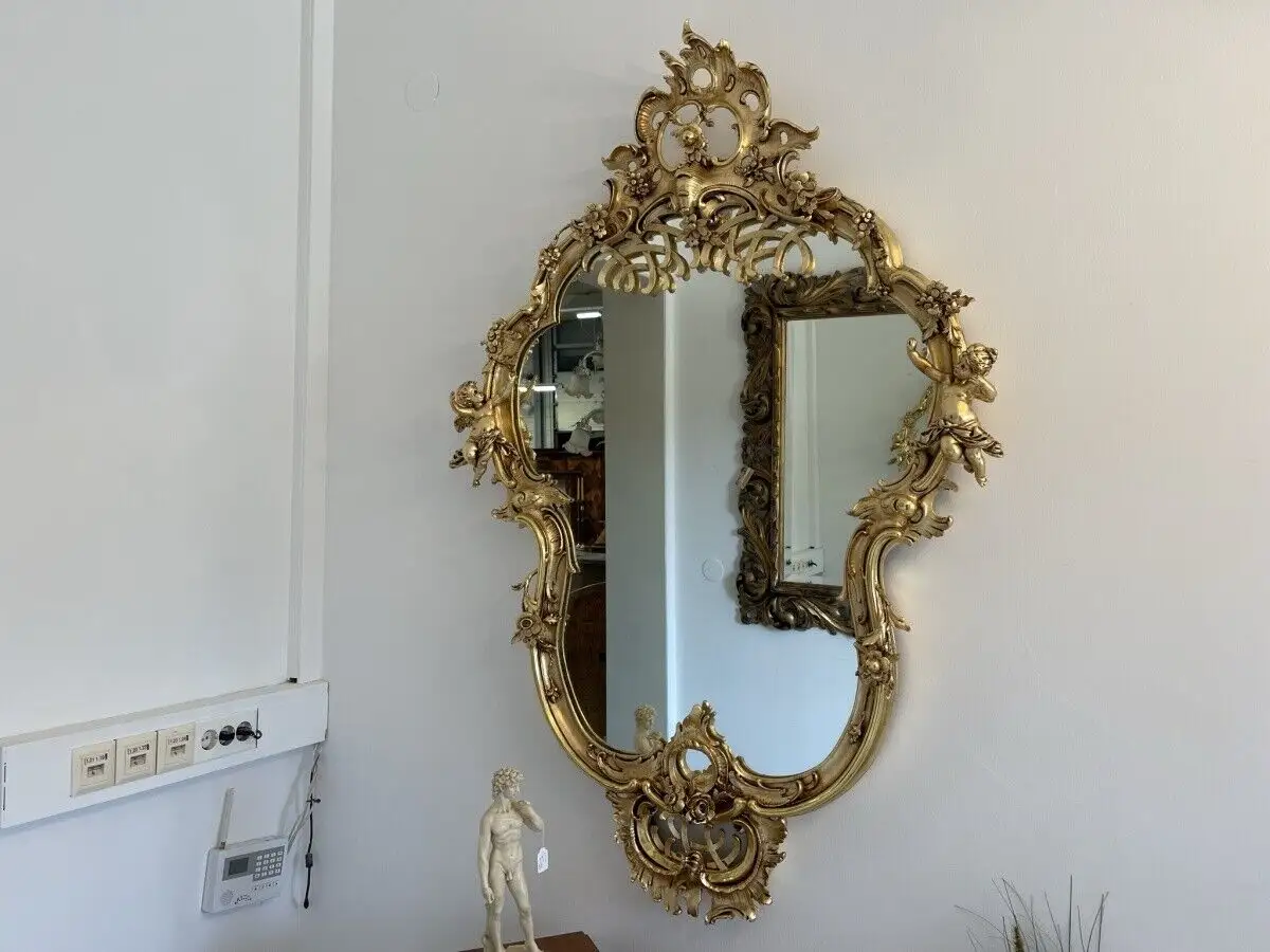 restaurierter Engelsspiegel authentischer figuraler Florentiner Spiegel