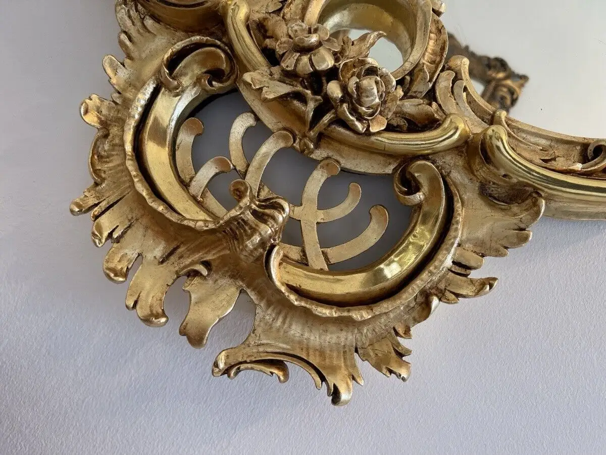 Hier handelt es sich um einen originalen sehr großen Barockspiegel um 1800 in wunderschön gefertigten floralen vergoldeten Rahmen