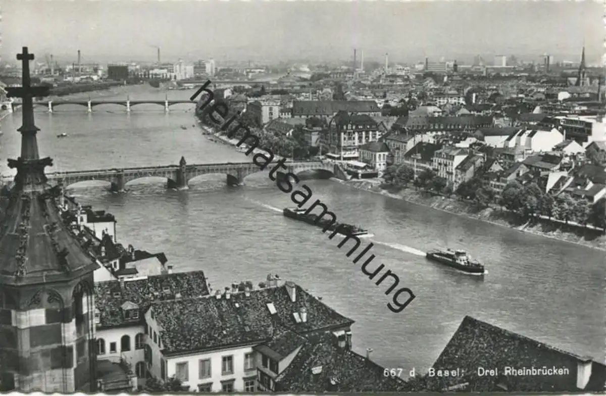 Basel - Drei Rheinbrücken - Foto-AK - Verlag Hans Frey Basel gel. 1965