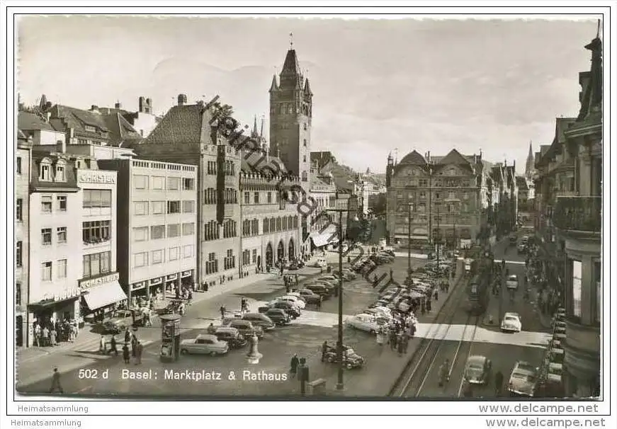 Basel - Marktplatz & Rathaus - Foto-AK - Verlag Gebr. Frey Basel (G28726) gel. 1955