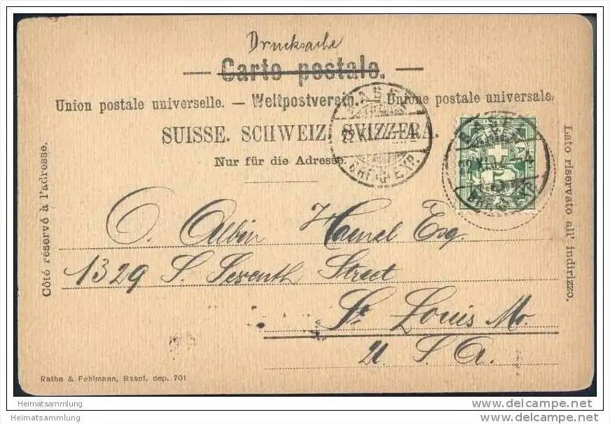 Basel - Universitätsbibliothek - Verlag Rathe & Fehlmann Basel (E49302) gel. 1902