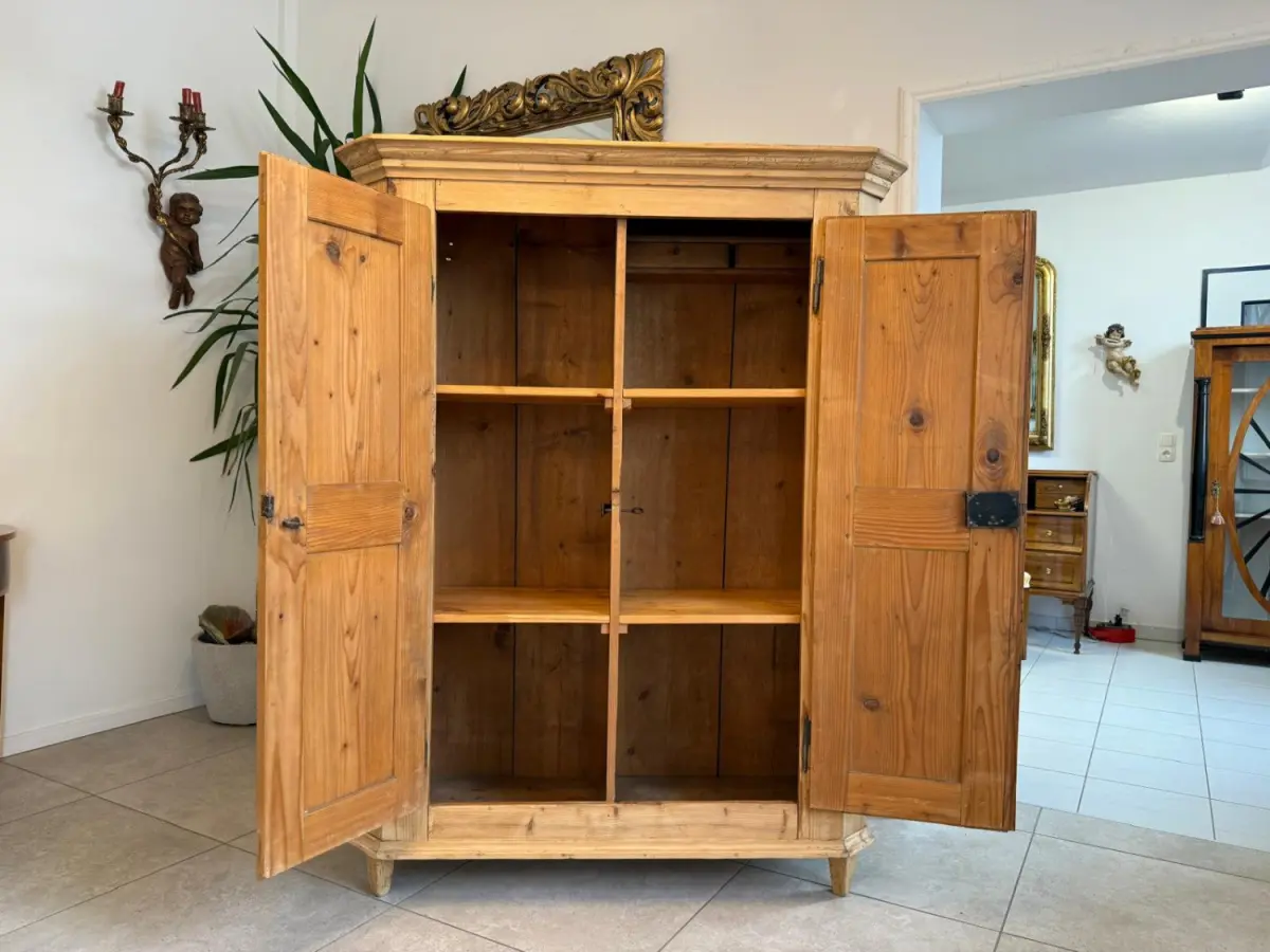 Dieser faszinierende antike Bauernschrank strahlt die stille Würde vergangener Zeiten aus und bringt den warmen Atem des Landlebens in jeden Raum.
