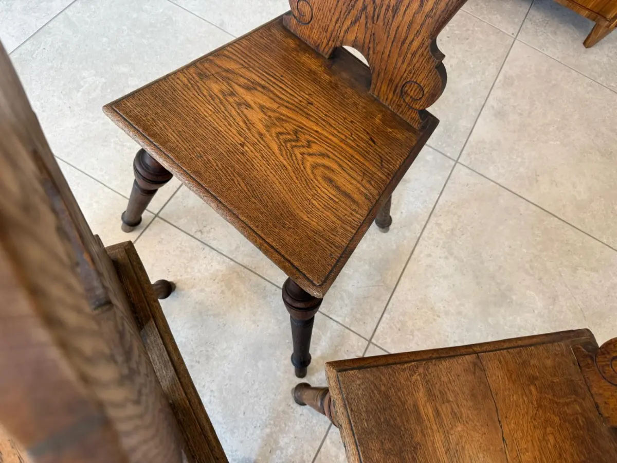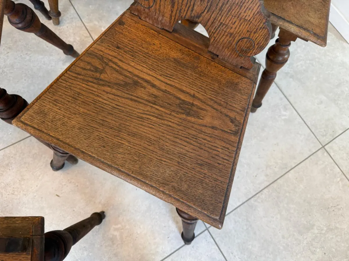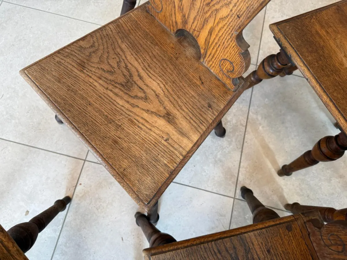 Zum Verkauf stehen 46antike, sehr schöne und aus massivem Eichenholz gefertigten Bauernsessel