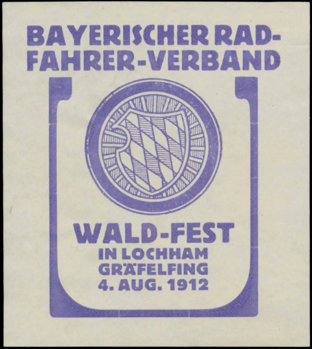 Fahrrad, Wald-Fest in Lochham Gräfeling am 4. August 1912, Größe/Zustand: 7x6 , guter Zustand, Original alte Reklamemarke die seinerzeit für die Werbung benutzt wurde