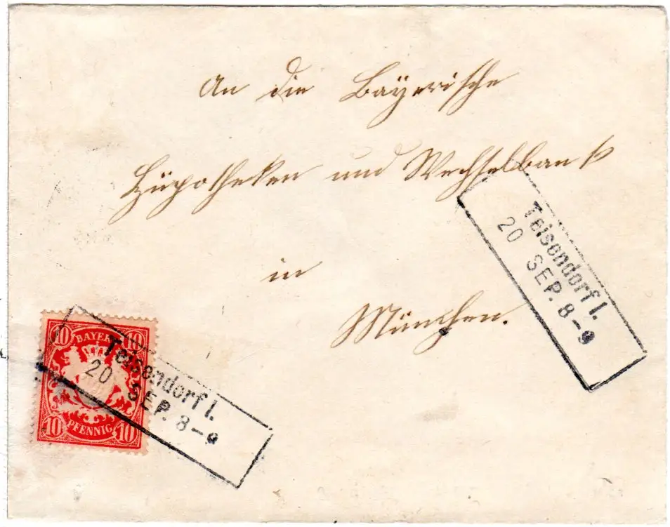 Bayern 1896, Aushilfs-L2 TEISENDORF I. klar auf Brief m. 10 Pf. u. Abs. Rossdorf