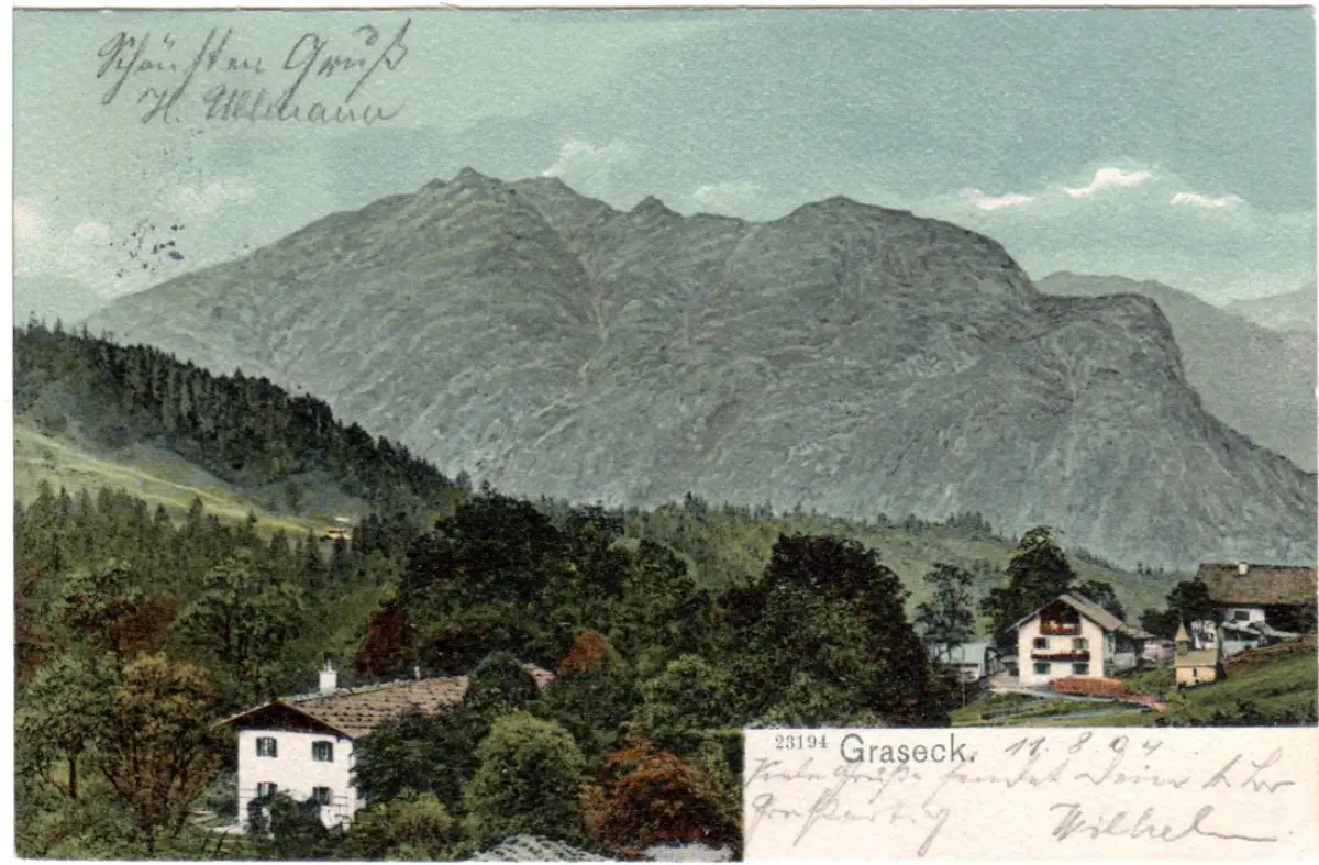 Bayern 1904, Posthilfstelle VORDERGRASECK Taxe Partenkirchen auf AK m. 5 Pf.