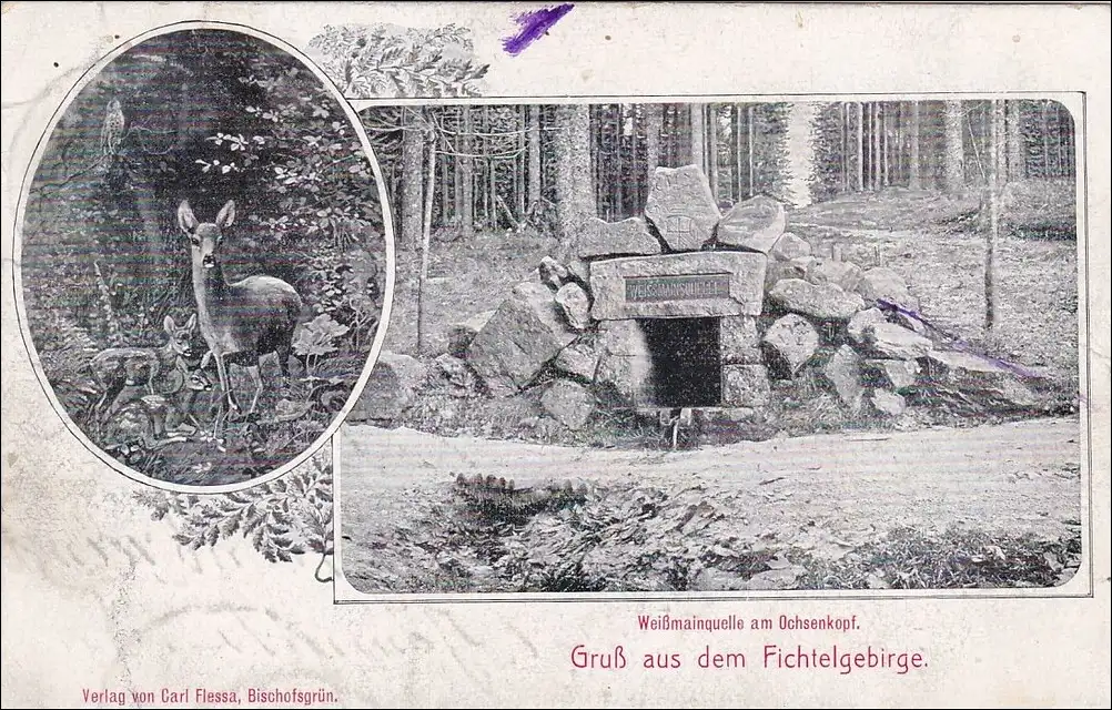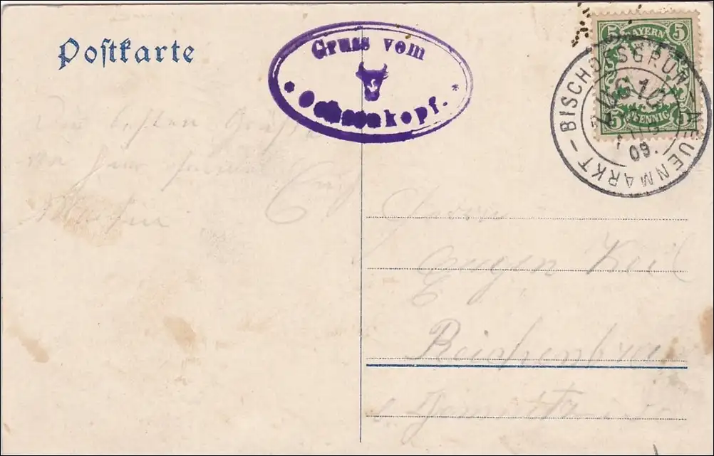 Bayern: 1909, Postkarte Bischofsgrün -Neuenmarkt Ochsenkopf
