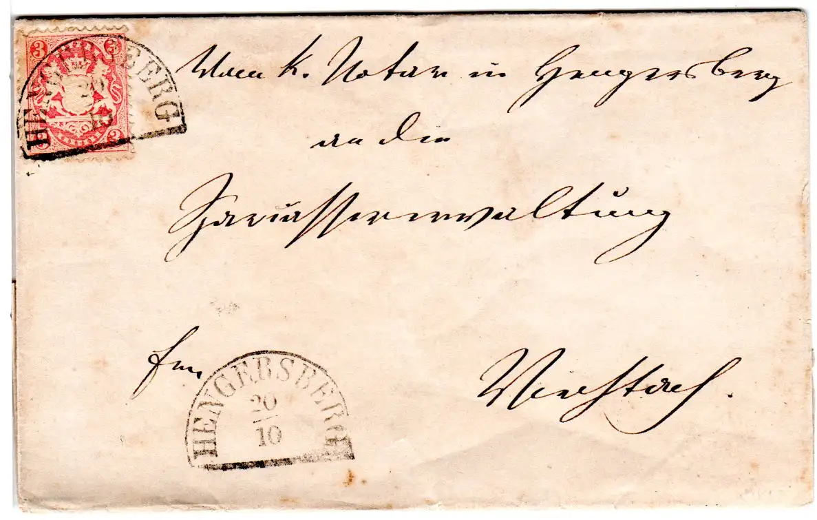 Bayern, 3 Kr. auf Brief m. HKS Hengersberg n. Viechtach