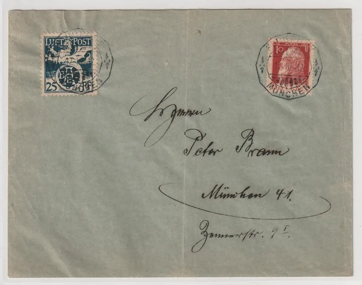 Bayern: Flugpostmarke F I auf Ortsbrief