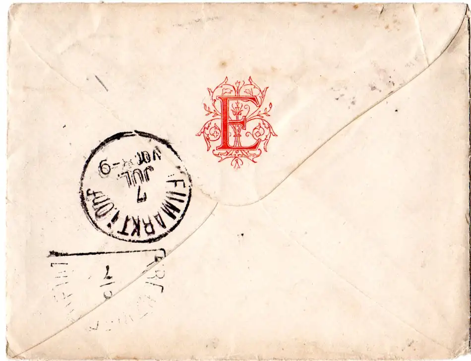 Brief n. Kreuzwertheim m. rücks. Ank.Stpl. sowie gedrucktem u. verziertem Monogramm E