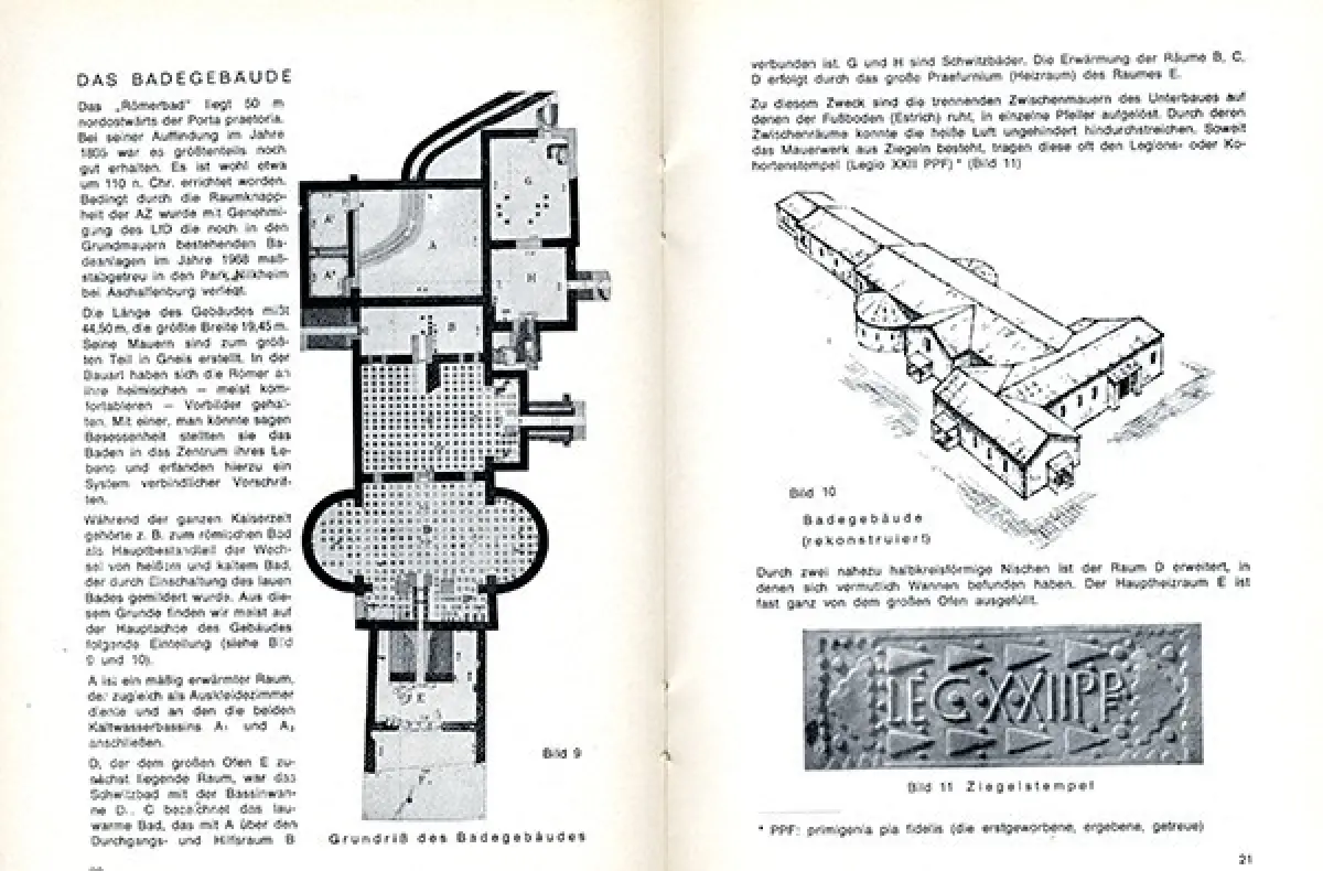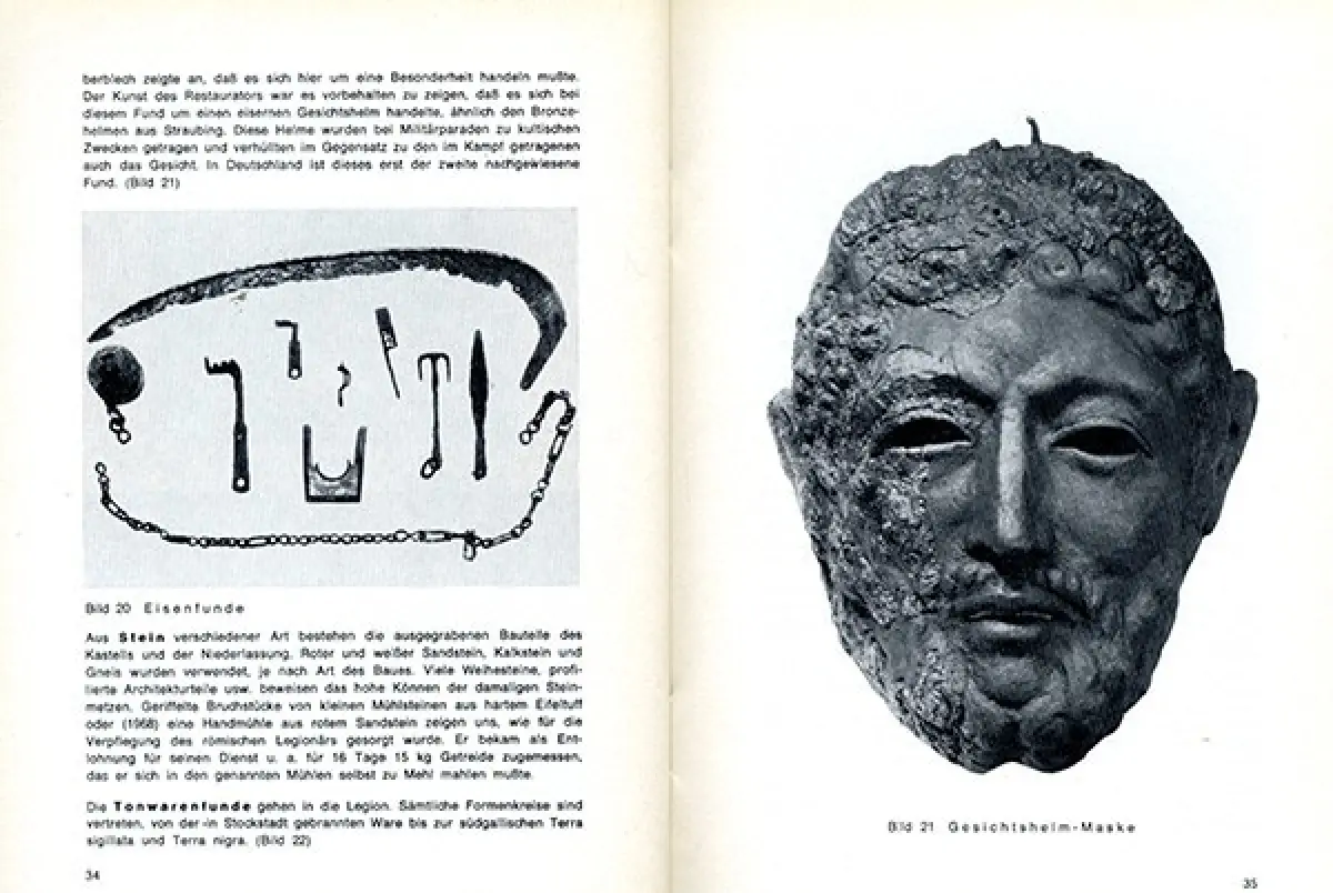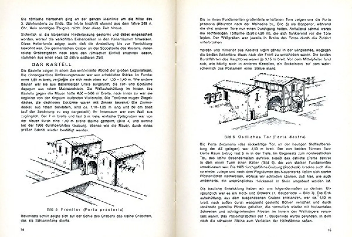 mit GESAMT 44 Seiten photografischen und druckgraphischen Abbildungen römische Grenzanlagen das Vordringen der Römer nach Germanien Kastell und Befestigungsanlagen Lage und Plan des Kastells Siedlung Lagerdorf Aufbau des Kastells Tore Ausrüstung und Bewaffnung das Badenaus Heiligtümer Einzelfunde der große Münzschatz und anderes Stand der archäologischen Forschung Übersicht und Beschreibung der wichtigsten Funde